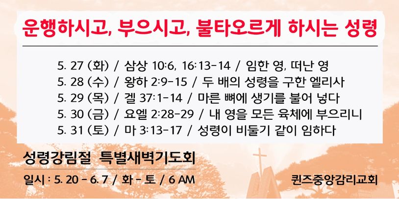 일시 : 4월 29일 (화) 10:30 AM / 퀸즈 중앙교회